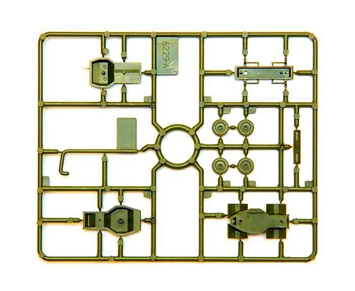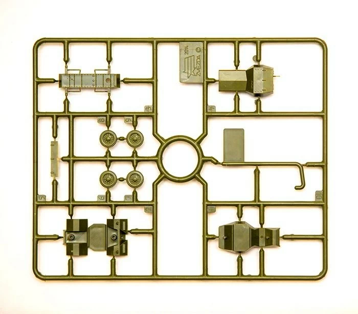 Набор деталей из пластмассы для сборки одной модели бронемашины.