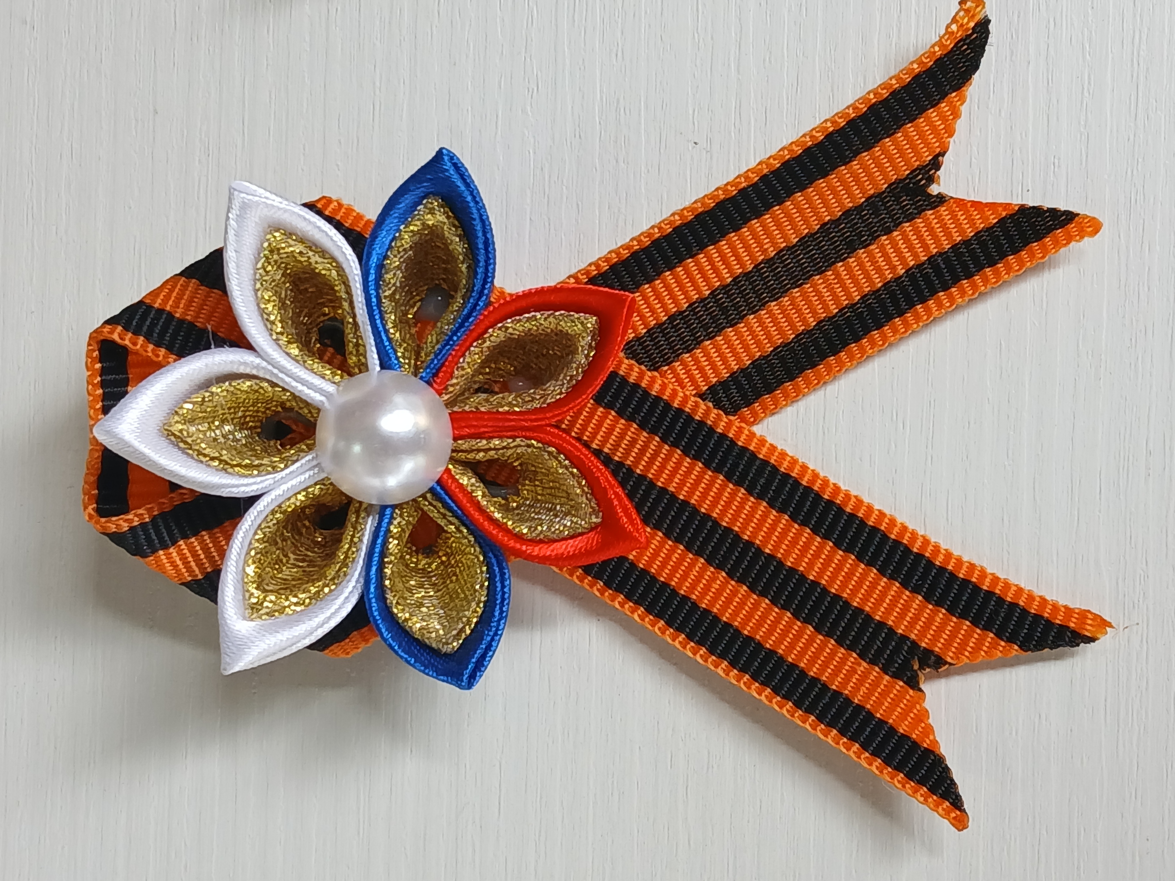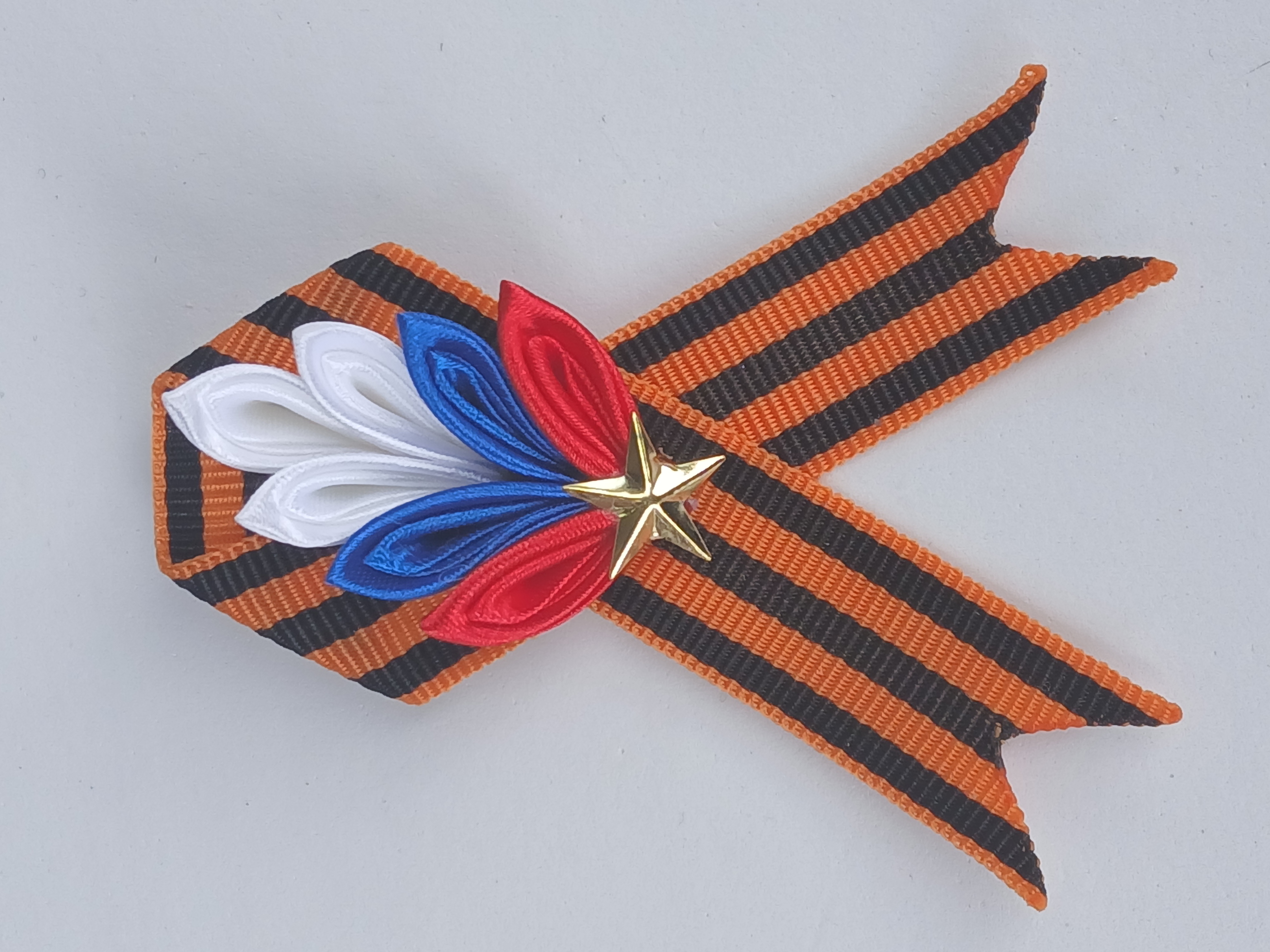 Брошь на 9 мая (Цветок и веточка) из георгиевской ленты