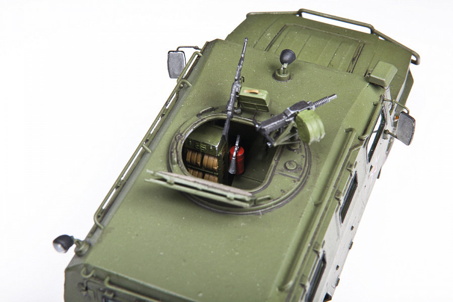 Набор деталей из пластмассы для сборки одной модели бронеавтомобиля.