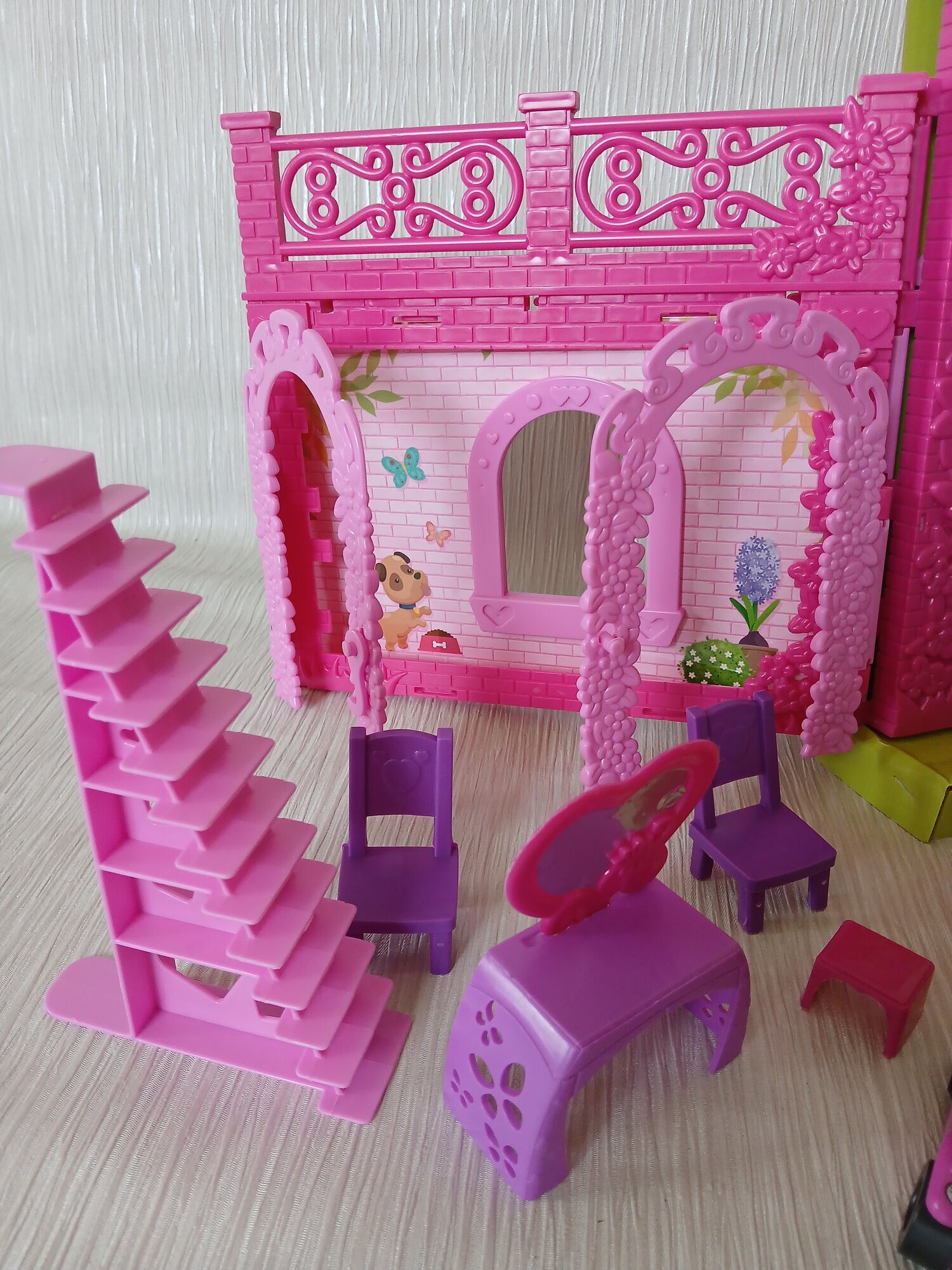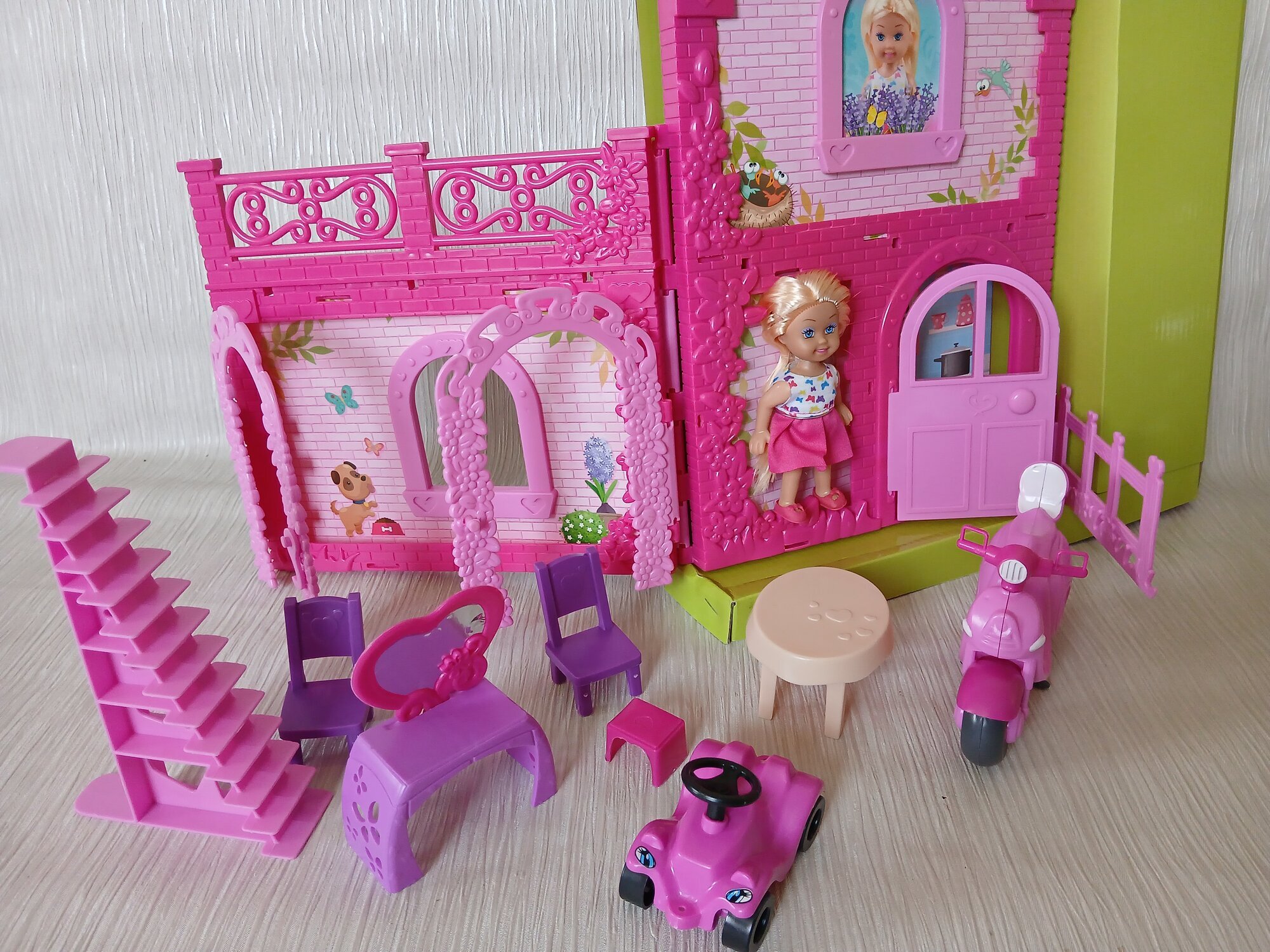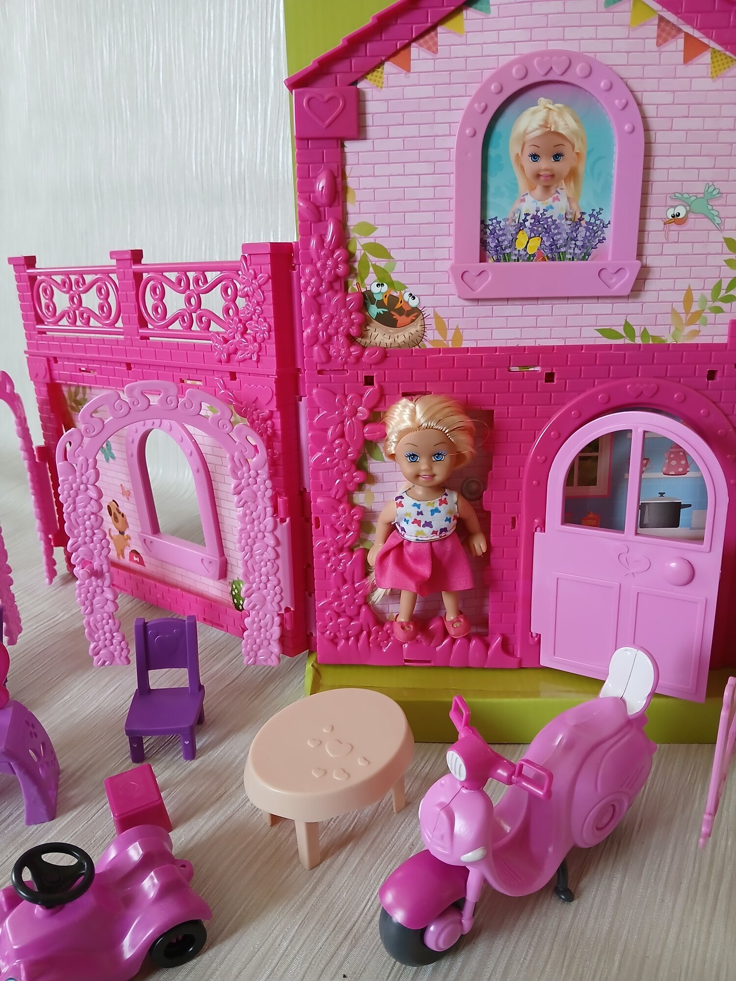 Красивая загородная вилла с набором мебели станет чудесным подарком для девочки. С таким большим и красочным набором она сможет придумать и разыграть множество увлекательных сюжетов. Набор мебели поможет обставить комнаты домика.