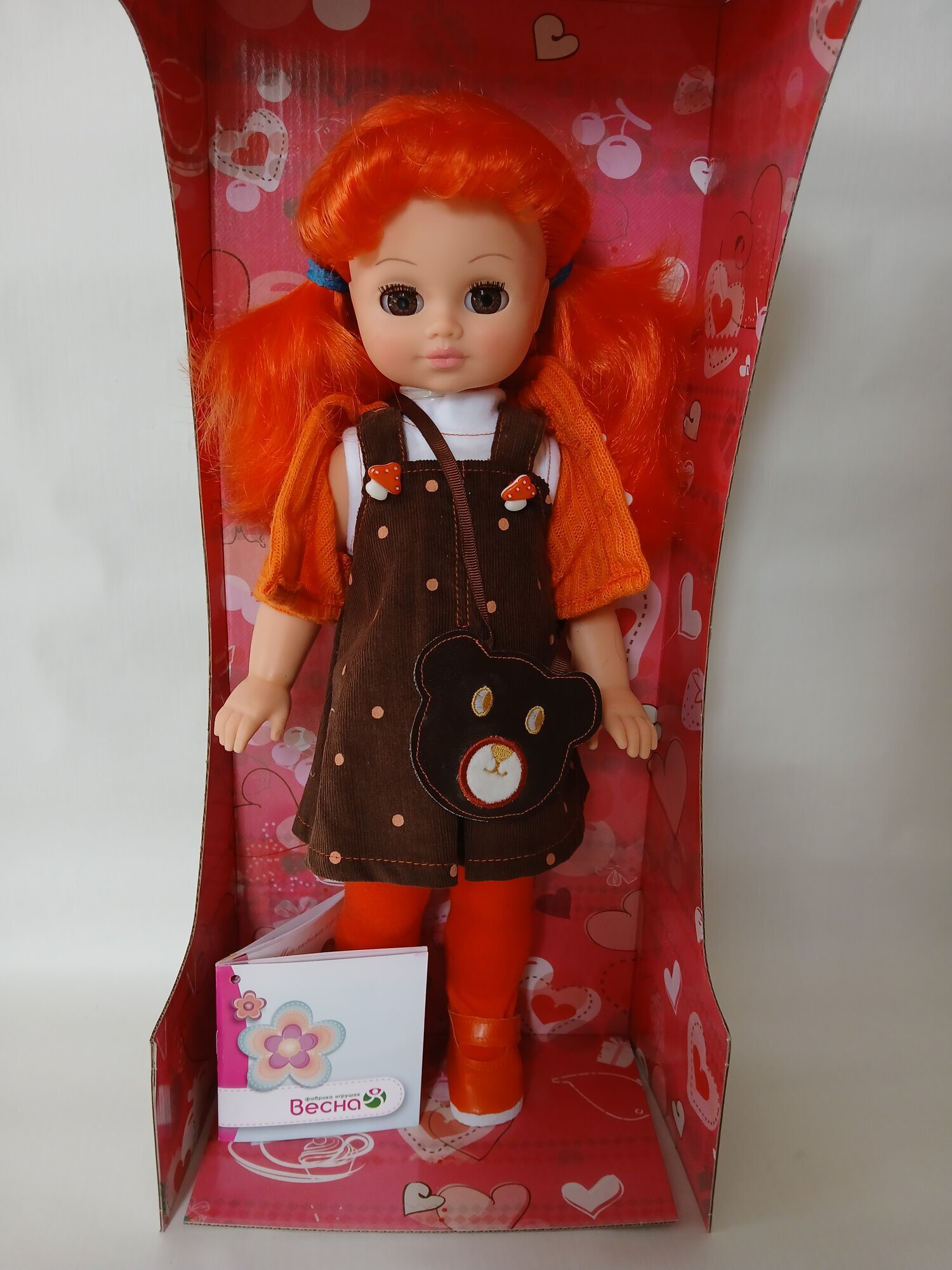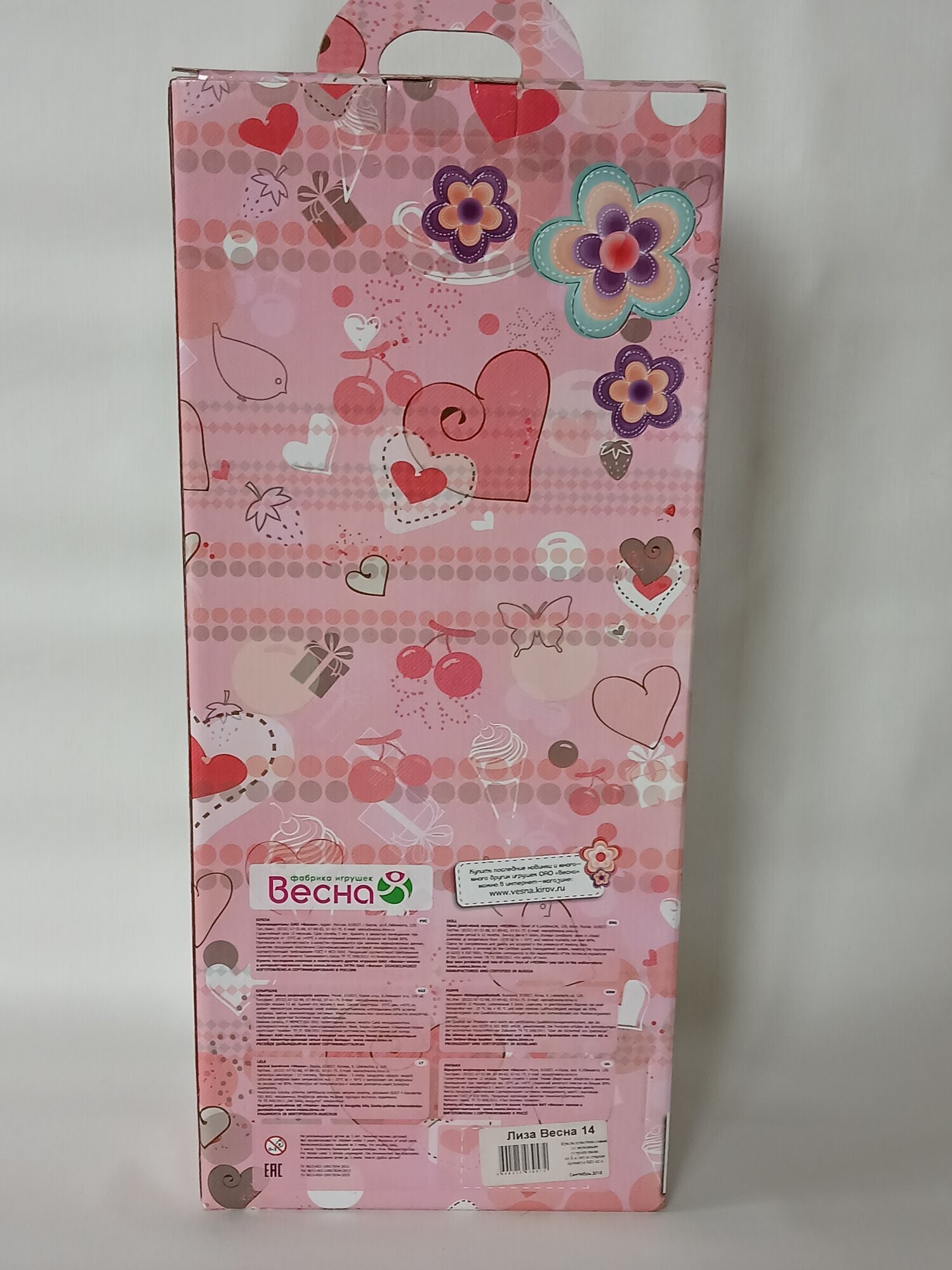 Кукла Лиза Весна 14 из серии «Моя любимая кукла» может стать настоящей подружкой для ребёнка. В комплект одежды для куклы входит: майка из трикотажа, вязаное болеро, сарафан из вельвета, колготки из трикотажа. Комплект дополняют туфли. Производитель оставляет за собой право изменения цветовой гаммы одежды и волос куклы, цвет глаз может варьироваться. Игровые и дидактические возможности куклы: при нажатии на звуковое устройство, вставленное в спинку, кукла произносит фразы. Наличие элементов одежды, которые легко снимаются и надеваются, аксессуара-сумочки-имитации разнообразит возможности сюжетно-ролевых игр с этой куклой, в процессе которых развивается мелкая моторика и творческое воображение ребёнка. Прекрасные прошитые волосы из качественного нейлона, похожие на натуральные, можно завивать, расчёсывать, укладывать в разные причёски, меняя образ куклы. Рост куклы 42 см. Кукла Лиза Весна 14 озвучена. Глаза вставные закрывающиеся. Тело куклы пропорционально. Ручки и голова выполнены из эластичного, приятного на ощупь винила, а туловище и ноги из пластмассы. Кукла Лиза Весна 14 соответствует Техническому регламенту Таможенного Союза о безопасности игрушки. Дополнительно к кукле можно приобрести комплект одежды. Кукла произносит следующие фразы:-Привет! Давай потанцуем.-Я люблю музыку.-Возьми меня за ручки.-Покружись со мной.-Как здорово!-А сейчас спой мне песенку.-А другую песенку…-Мне очень нравится!