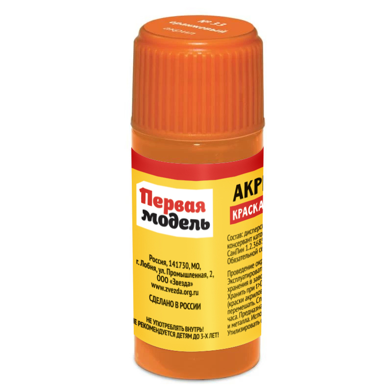Акриловая краска на водной основе. Краска готова для работы с ней. Краска разбавляется водой. Подходит для окраски моделей из пластика, металла, дерева, бумаги с помощью кисти.