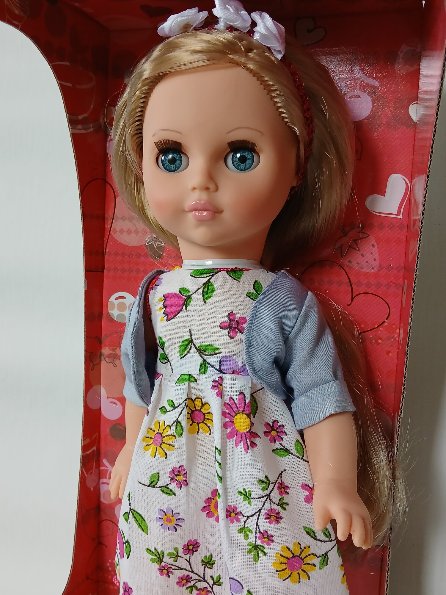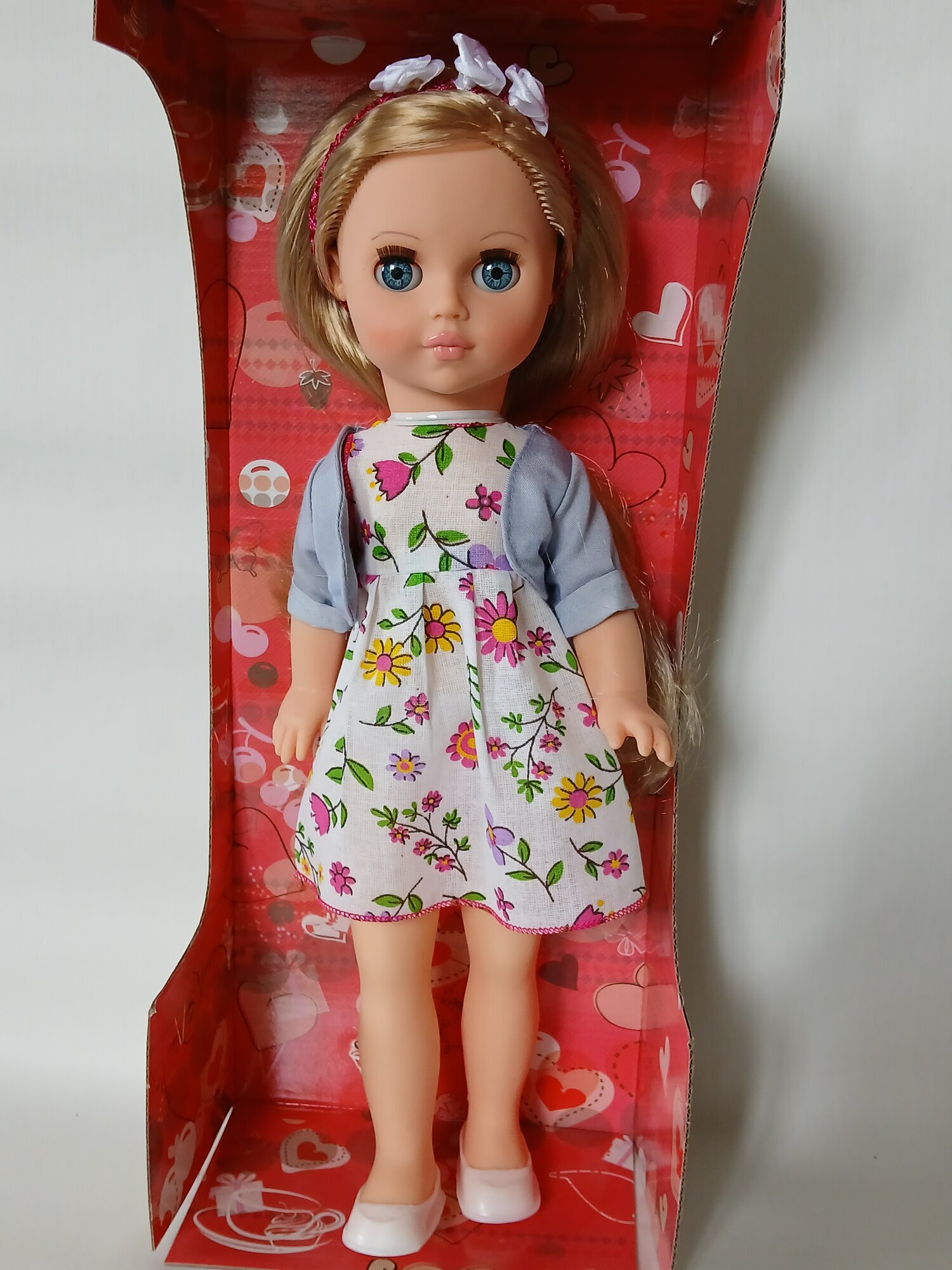 Кукла выполнена из высококачественного пластика и винила, что обеспечивает ей долговечность и безопасность для ребенка. Общая высота куклы составляет 38 см, что делает ее удобной для игры и переноски.
