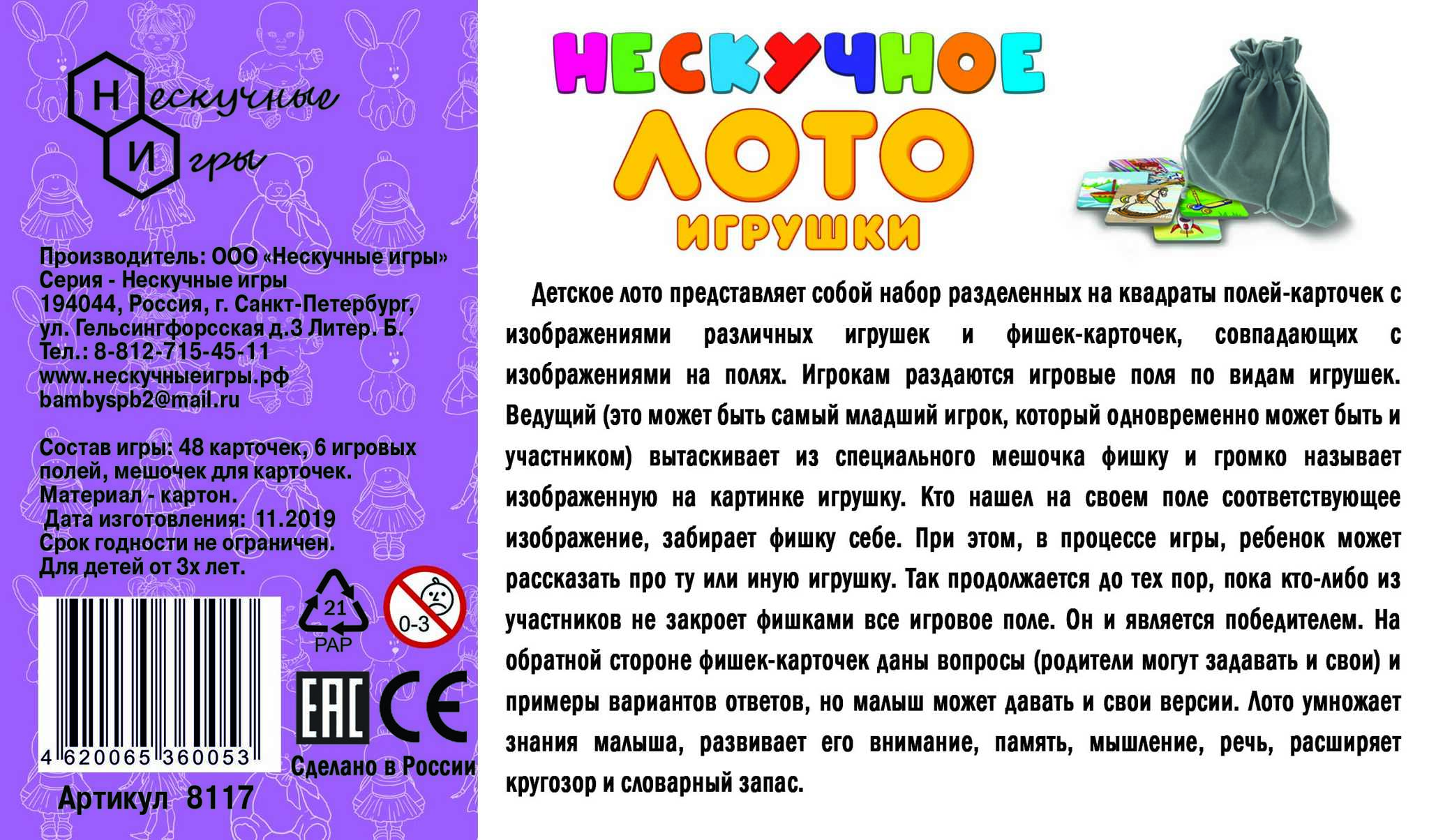 Нескучное лото "Игрушки" арт.8117