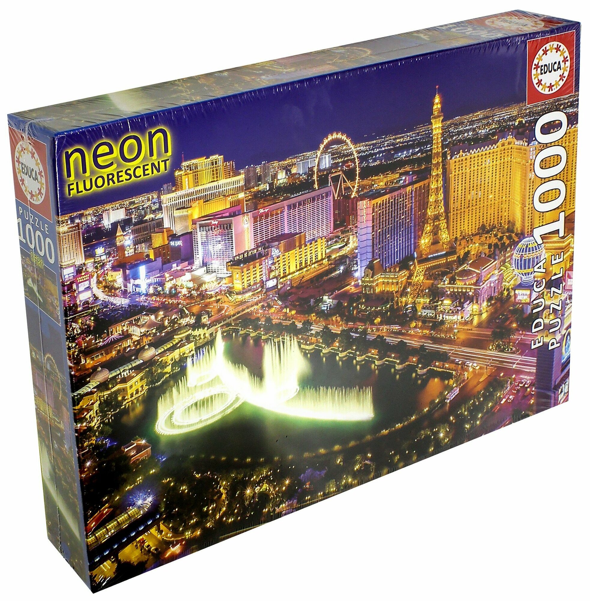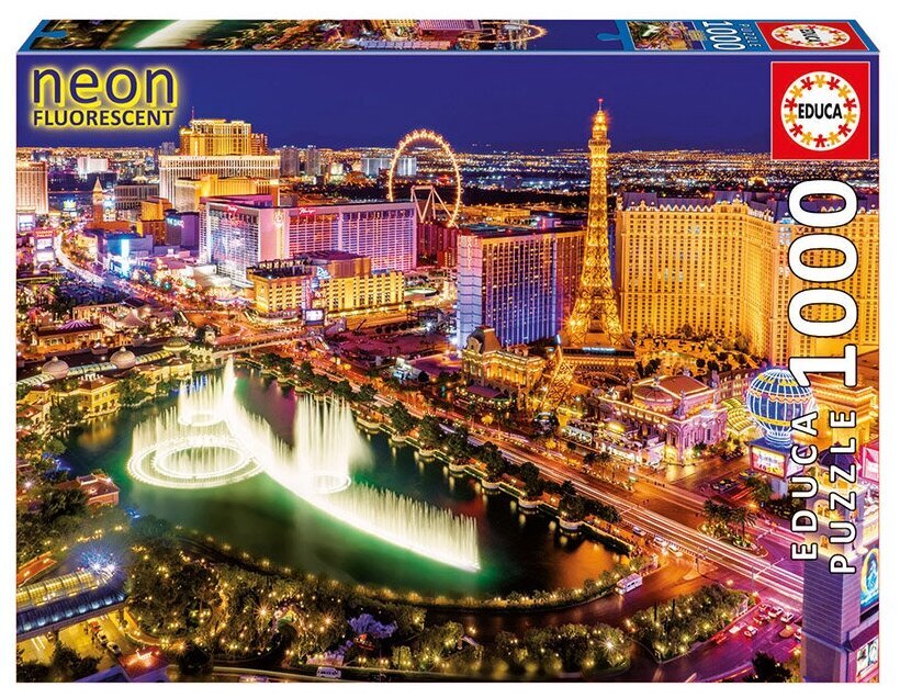 Educa Пазл Лас-Вегас неоновый 1000 элементов 16761 Многообразная тематика пазлов Educa удовлетворит даже самый взыскательный вкус и порадует великолепным качеством. Собрав такой пазл, вы получите восхитительную картину и море удовольствия! Для детей сборка пазла будет не только интересным, но и полезным занятием, так как это занятие тренирует моторику, внимательность, память и логику. Великолепные, яркие картины обязательно вызовут интерес и подарят эстетическое удовольствие во время собирания. Для того, чтобы научиться разбираться в нюансах цветов и сравнении фрагментов пазла с оригиналом, детям необходима помощь родителей. Ваши совместные занятия пойдут ребенку на пользу, подготовят его внимательность и усидчивость, что особенно пригодится в его дальнейшей учебе в школе. Пазлы выполнены из высококачественных нетоксичных материалов, рисунок не трескается и не выцветает со временем. Детали рисунка светятся в темноте. Размер собранного пазла: - 68 x 48 см.