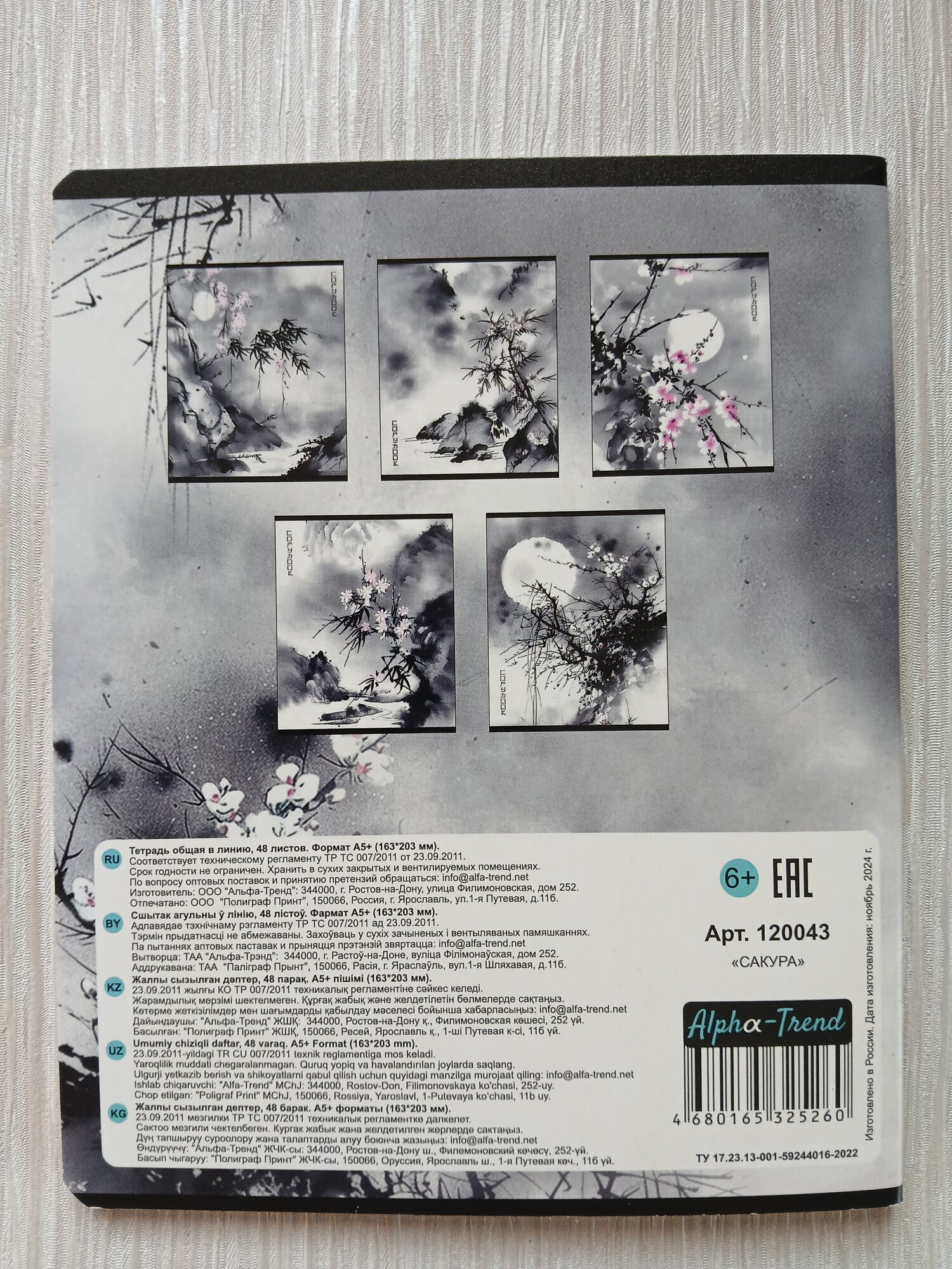 Тетрадь общая 48 листов «Сакура» выполненная в монохромных тонах новой коллекции станет надежным помощником любого школьника на уроках! Тетради выполнены из высококачественного картона, плотностью 190 г/м2, и имеют внутренний блок исключительного качества плотностью 60 г/м2. Все тетради соответствуют требованиям по техническому регламенту. Тетрадь выполнена с эффектом матовой ламинации, который подобран специально под дизайн. Тетради для девушек и молодых парней с креативным дизайном отлично подходят для выполнения домашних и контрольных работ. Скругленные уголки придают более эстетичный вид, который не теряется во время использования - тетради будут выглядеть как новые на протяжении долгого времени. Это отличный выбор для любого школьника, так как в комплект входит 5 штуки, которые, как и предметные тетради, можно использовать для любых уроков. Такой стильный набор также подойдет для работы в офисе, для лекций в институте или для полезных записей дома. Тетради тематические общие в клеточку, поэтому они отлично подойдут для школы как предметные тетради. Наши красивые тетради по предметам стильные и привлекательные. Широкий выбор дизайна удовлетворяет вкусы девочек и мальчиков.