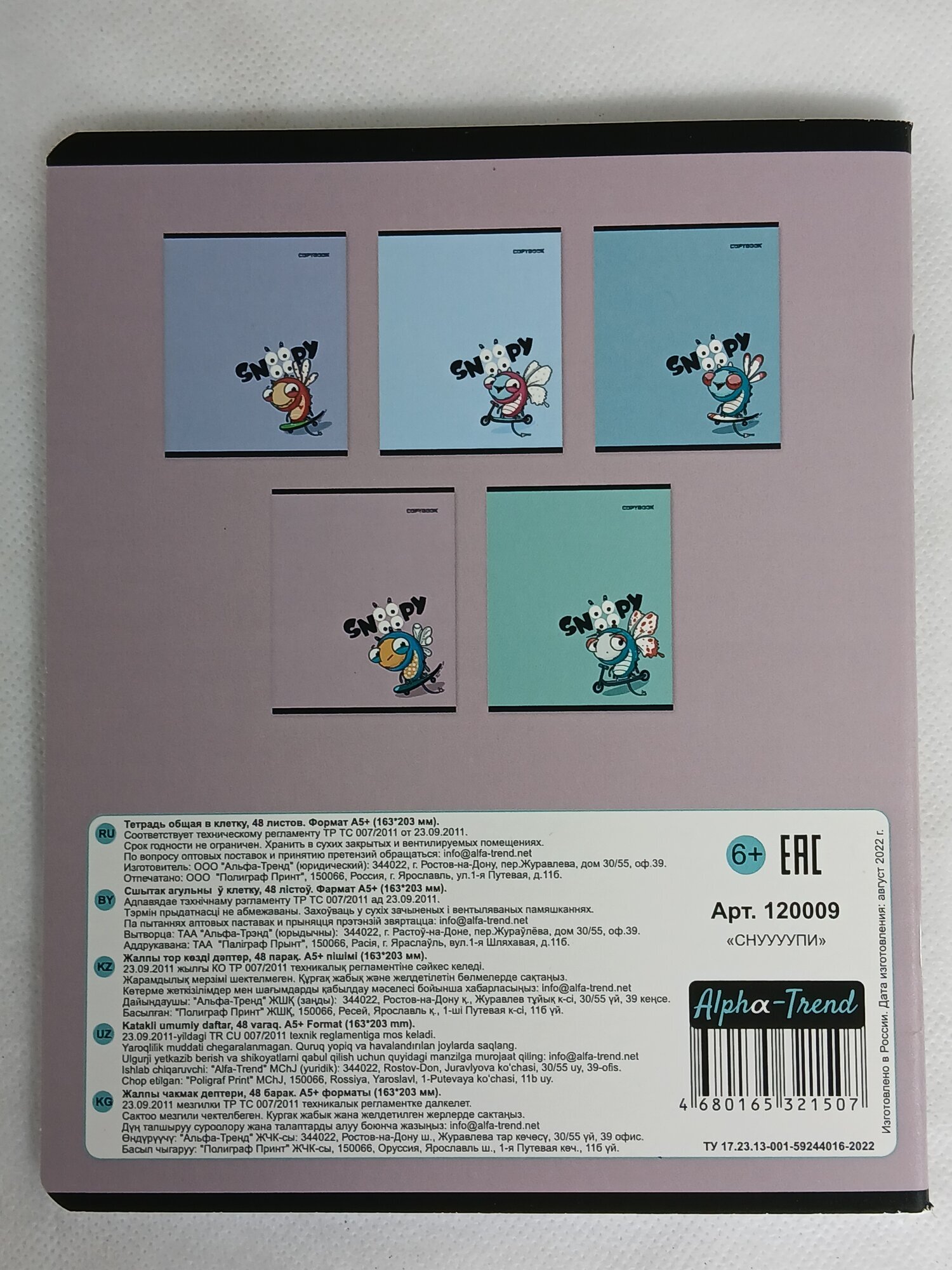 Тетрадь общая 48 листов «СНУУУУПИ» выполненная в не ярких тонах новой коллекции станет надежным помощником любого школьника на уроках! Тетради выполнены из высококачественного картона, плотностью 190 г/м2, и имеют внутренний блок исключительного качества плотностью 60 г/м2. Все тетради соответствуют требованиям по техническому регламенту. Тетрадь выполнена с эффектом матовой ламинации, который подобран специально под дизайн. Тетради для девушек и молодых парней с креативным дизайном отлично подходят для выполнения домашних и контрольных работ. Скругленные уголки придают более эстетичный вид, который не теряется во время использования - тетради будут выглядеть как новые на протяжении долгого времени. Это отличный выбор для любого школьника, так как в комплект входит 5 штуки, которые, как и предметные тетради, можно использовать для любых уроков. Такой стильный набор также подойдет для работы в офисе, для лекций в институте или для полезных записей дома. Тетради тематические общие в клеточку, поэтому они отлично подойдут для школы как предметные тетради. Наши красивые тетради по предметам стильные и привлекательные. Широкий выбор дизайна удовлетворяет вкусы девочек и мальчиков.